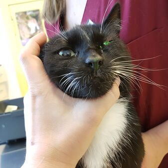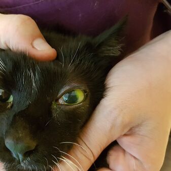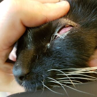Der letzte Kater kam aus dem Freigang abends nach Hause und hat am morgen plötzlich das Auge so zugekniffen. Wir haben einmal gründlich geschaut und die Zecke am oberen Augenlid gefunden, die sich dort festgesaugt hatte. Zecken oder Grannen im Auge schauern gerne, deshalb sollten die Augen einmal mittels Fluoreszin (einem Farbstoff extra für das Auge) eingefärbt werden. Ist das Auge beschädigt, setzt sich der Farbstoff auf die Hornhaut und man kann das Ausmaß des Schadens beurteilen. Guter Nebeneffekt: Man kann gleichzeitig auch kontrollieren, ob der Tränen-Nasen-Kanal durchgängig ist. Hier gab es antibiotische Augentropfen und ein Gel für die Augen und nach einer Woche war wieder alles wunderbar verheilt.