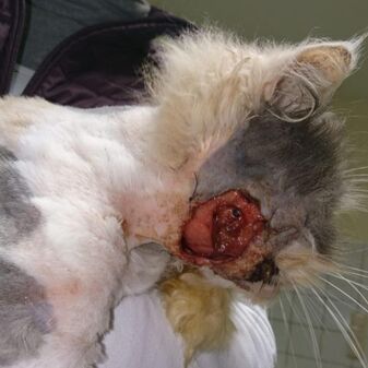Es ist der 12.11.2019, eine gute Freundin und Kollegin (Tierarztpraxis Jacob) schreibt mir morgens eine Nachricht, dass sie eine traurigen Fall hat. Eine Fundkatze mit großer offener Wunde. Sie weiß nicht wohin. Meine TFA meinte spontan, warum wir sie nicht nehmen.