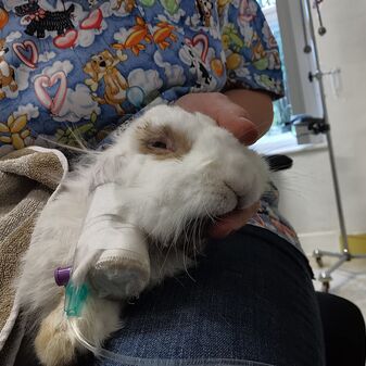 Lotti ist eine hübsche, scheue 6 jährige Kaninchen Dame, die bei uns ihre Impfquarantäne (Zeit von der Impfung bis zum Aufbau des Impfschutzes) verbringen sollte. Da sie bisher nur einmal geimpft wurde vor einigen Wochen (dort auch untersucht wurde!), ging ich von einem fitten, gesunden Kaninchen aus. Aber sie zeigt sich als extrem scheu und sehr mäkelig und bei genauen beobachten fiel uns schon auf, dass etwas nicht stimmt.